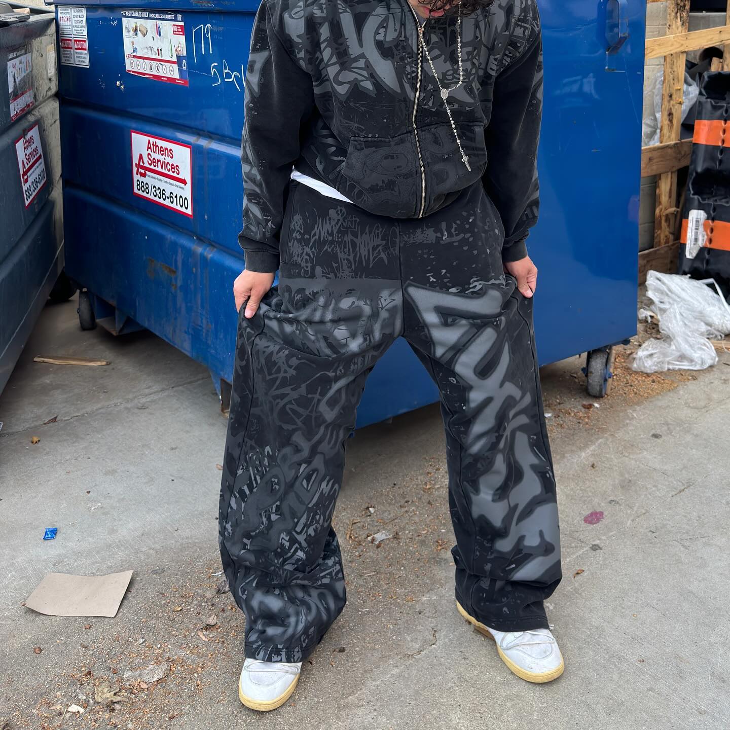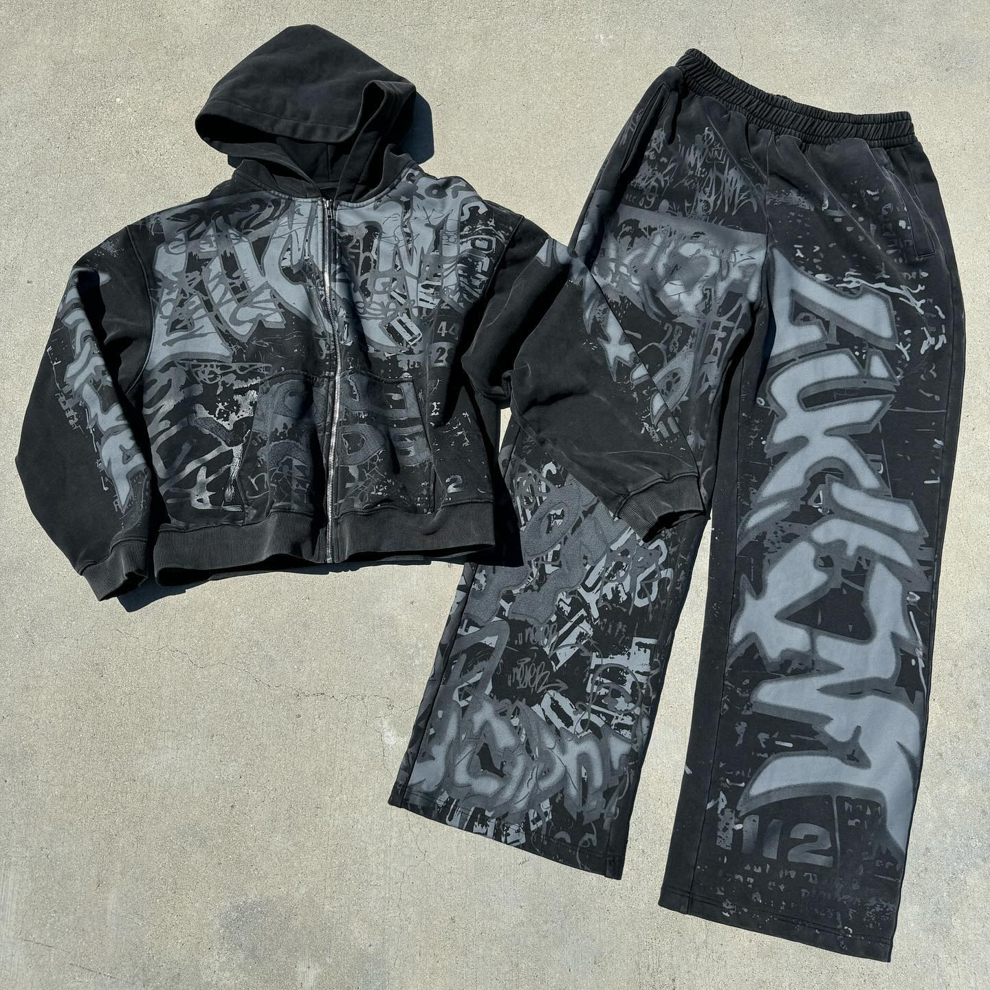 Graffiti Zip-Up Hoodie and Pants Two-Piece Set